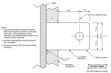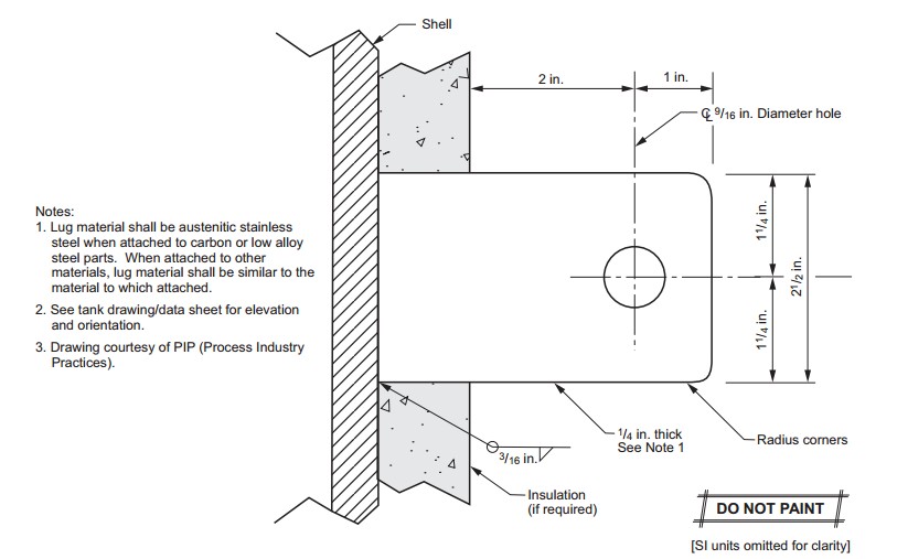 Fabricado en acero inoxidable para tanques de acero al carbono o aleación de acero con bajo contenido de carbono. Si están unidos a otros materiales, el material de la orejeta debe ser similar al material al que están unidos.