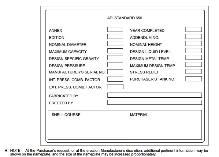 Permiten identificar inequívocamente el tanque y verificar que cumple con API 650.