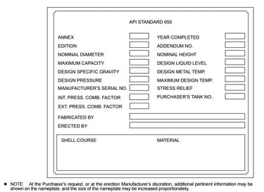 Accesorios para Tanques Verticales API STD 650 - Placa de Identificación y Placas de Aterramiento