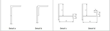 Top angle dimensions and characteristic: thickness, material, height and shape of connection.