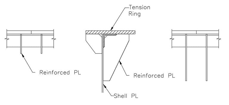 Carbon steel tension ring fabricated by the tank manufacturer (option normally used) or